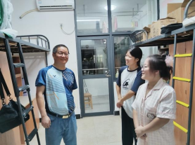 走访过程中,舒谷生书记与新生们亲切交谈,细致询问同学们来自哪里、是否适应校园环境、生活上是否存在困难等。他勉励大家尽快融入集体生活,珍惜研究生阶段的宝贵时光,既要潜心学术、夯实专业基础,也要注重身心健康发展,以积极饱满的状态迎接新的学习阶段。